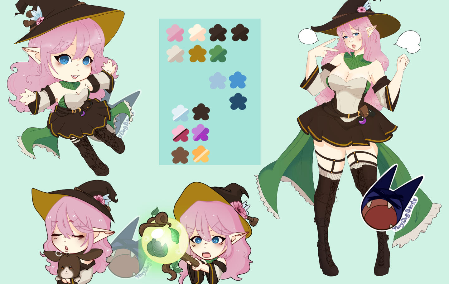 Comes with 1 full body model 1 full body chibi, 2 emotes of your choice, color chart, & choice of background color/texture.